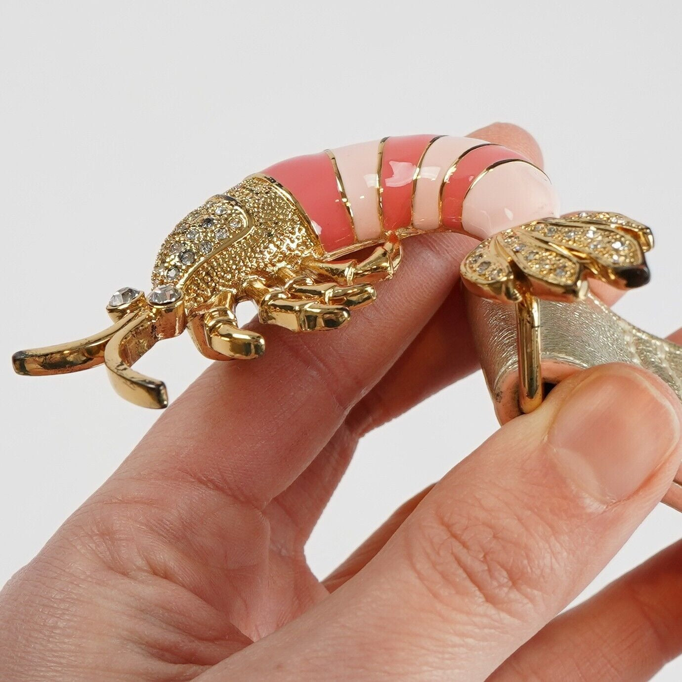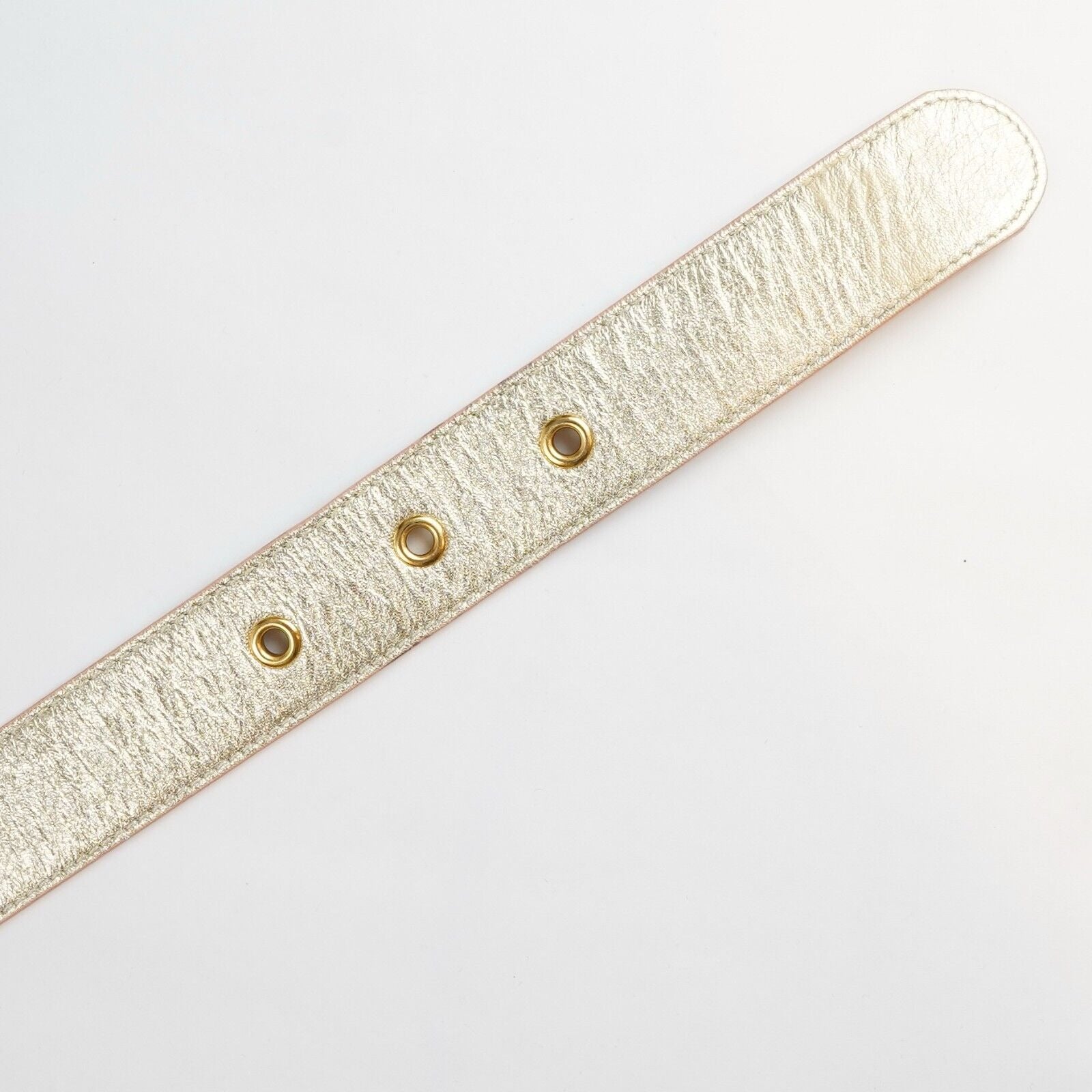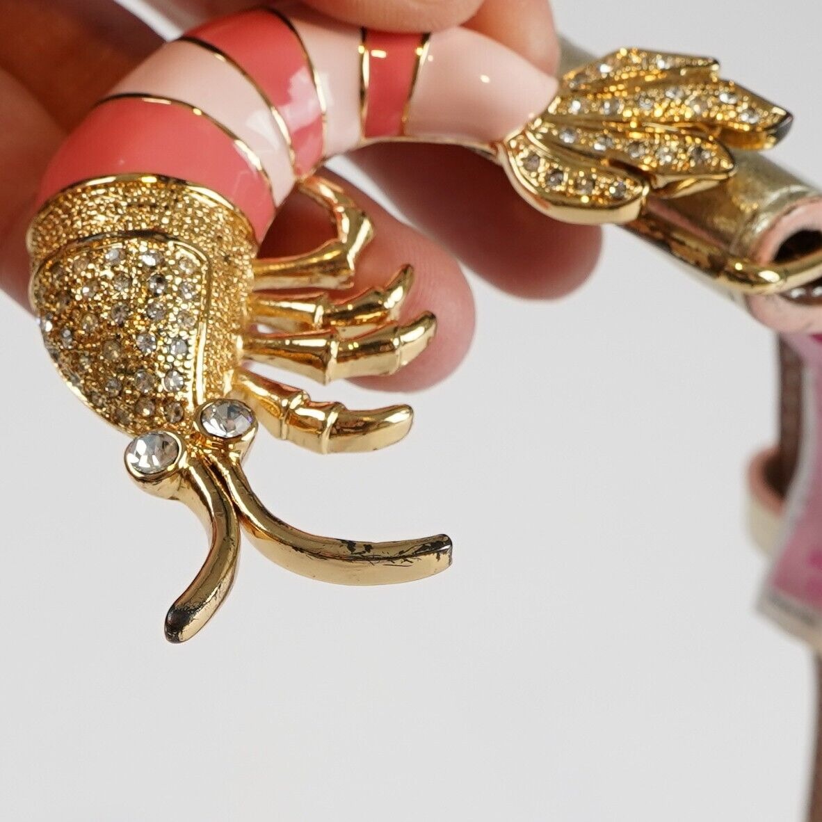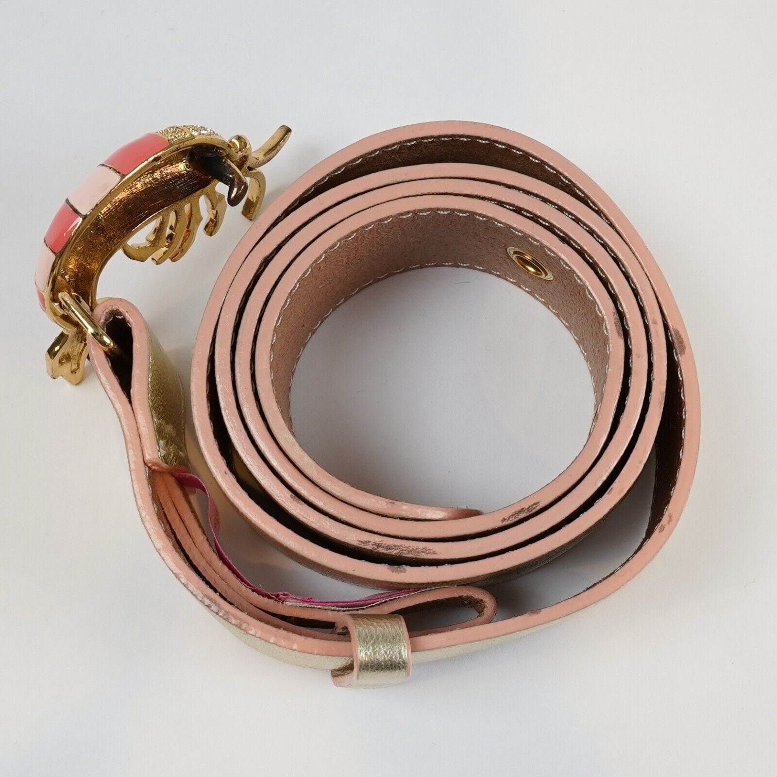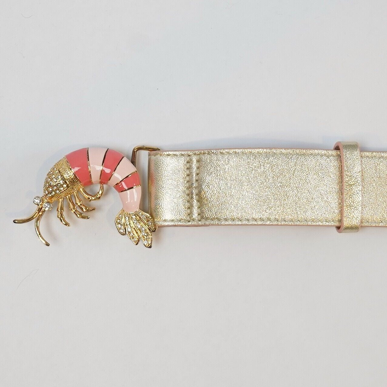 Gold Leather Belt with Gold & Pink Shrimp/Prawn Buckle adorned with rhinestones