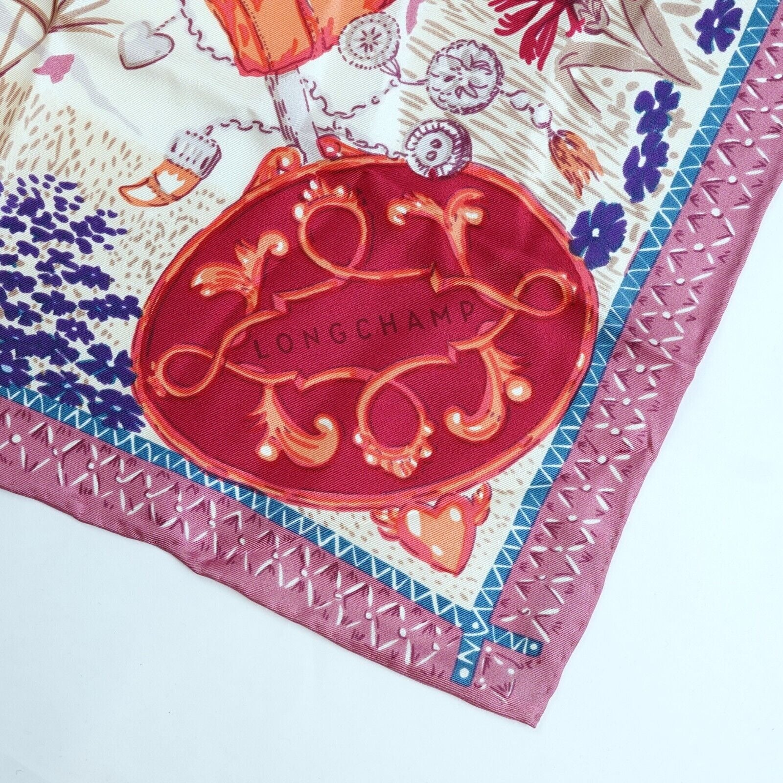 Longchamp Paris 100% Silk Scarf Floral Castle Pink - 34x34