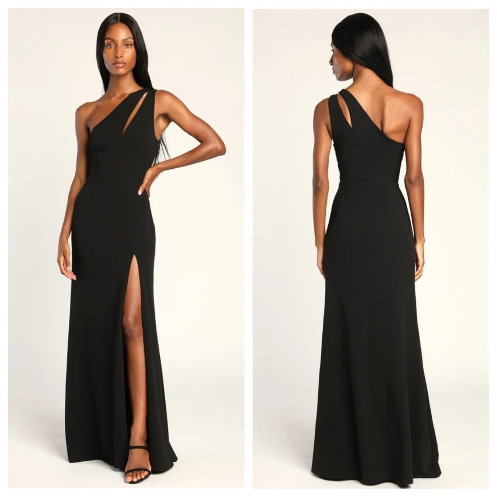 Lulu's Enchanted Energy Black One-Shoulder Maxi Dress - M