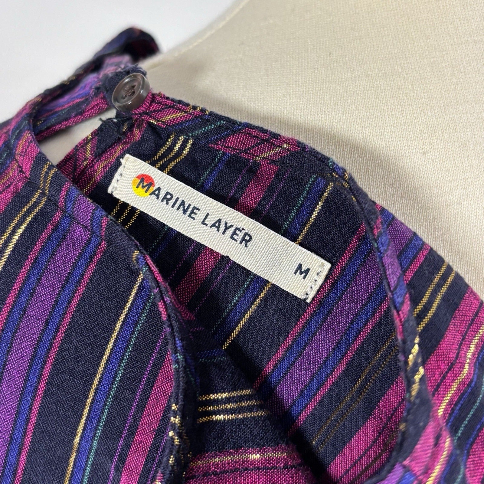 Marine Layer Alice Tiered Midi Maxi Dress Lurex Purple Luxe Stripe - M