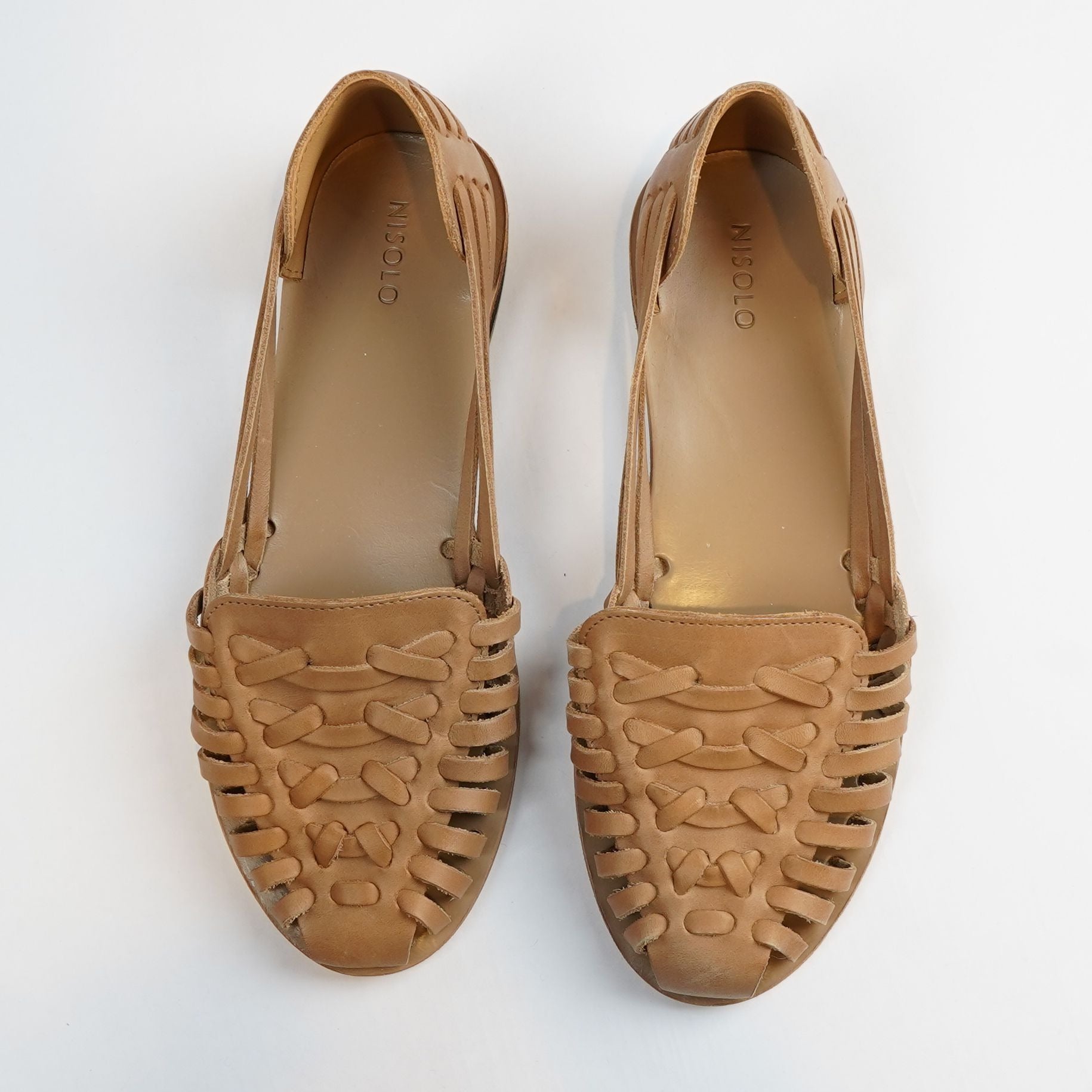 Nisolo Huarache Flat Woven Leather Sandals Almond Brown - 8