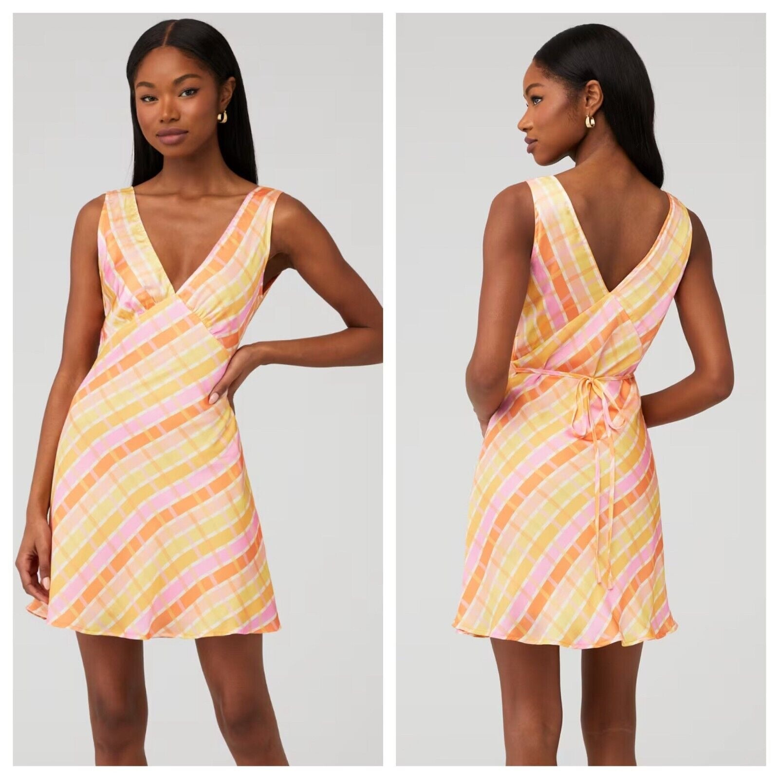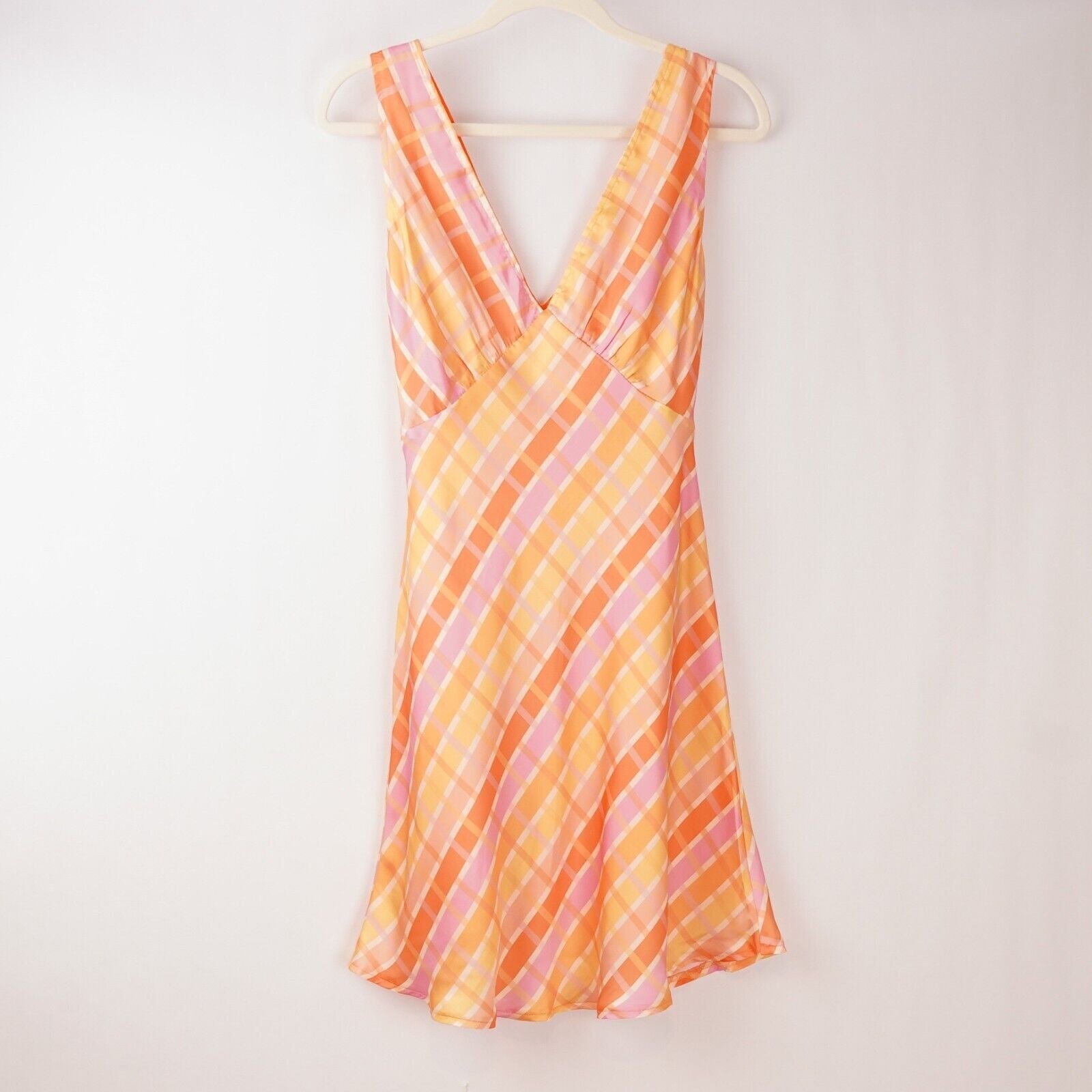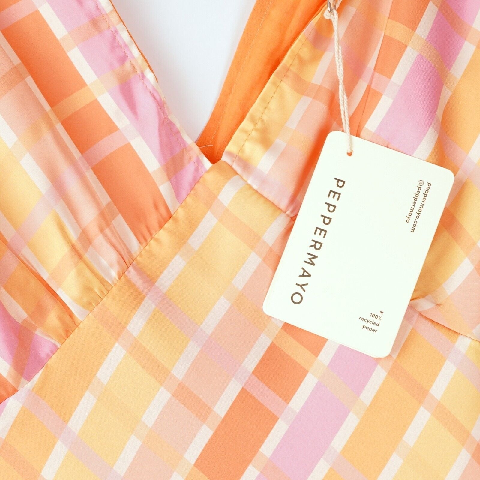 Peppermayo Audrey Vintage Slip Dress in Splice Check (Pink, Yellow, Orange)