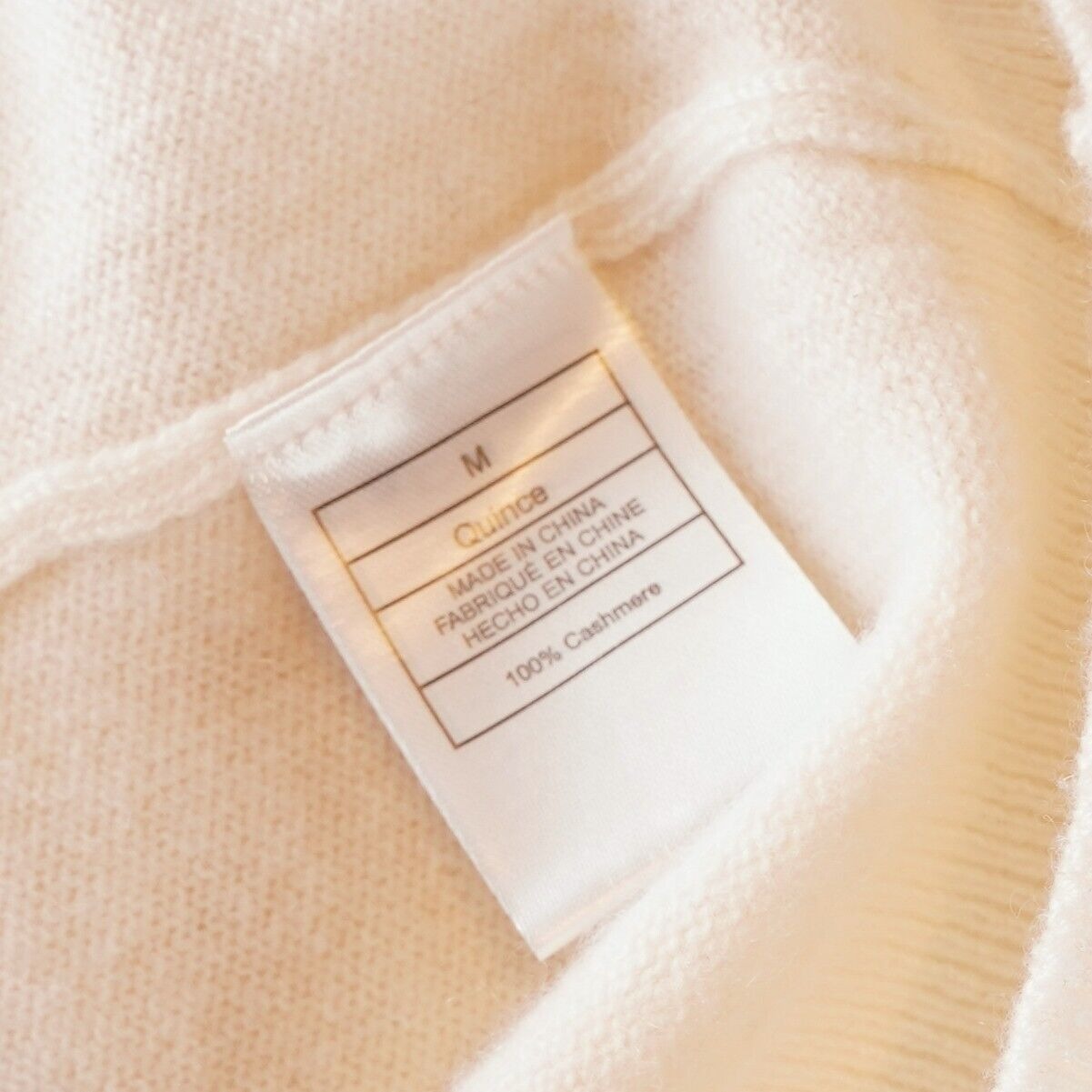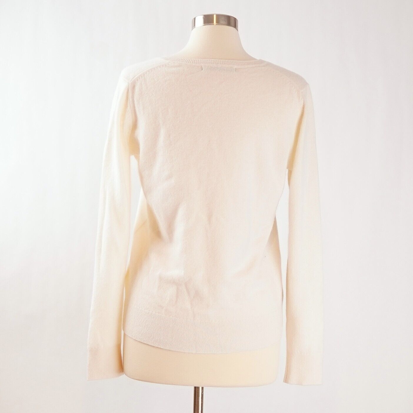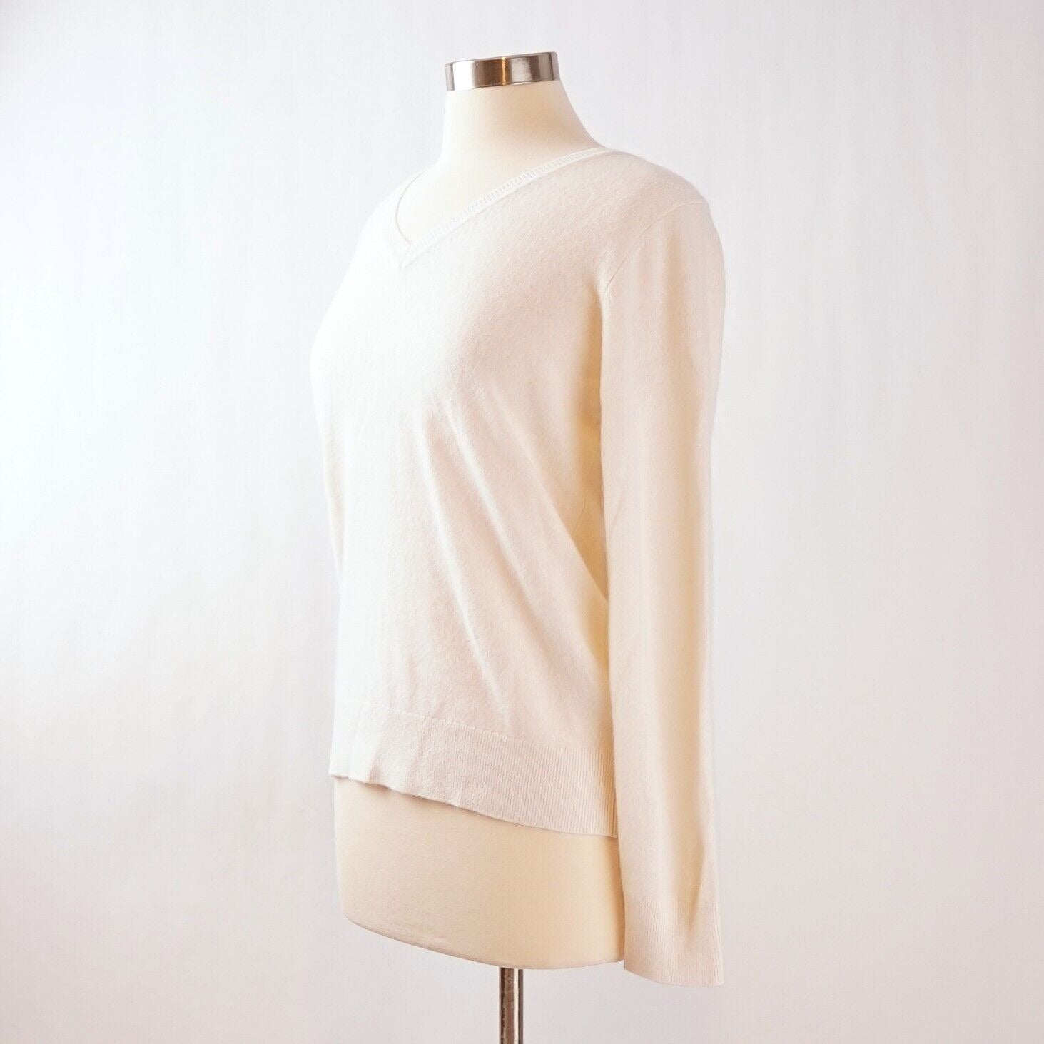 Quince Ivory V Neck Cashmere Long Sleeve Sweater - M