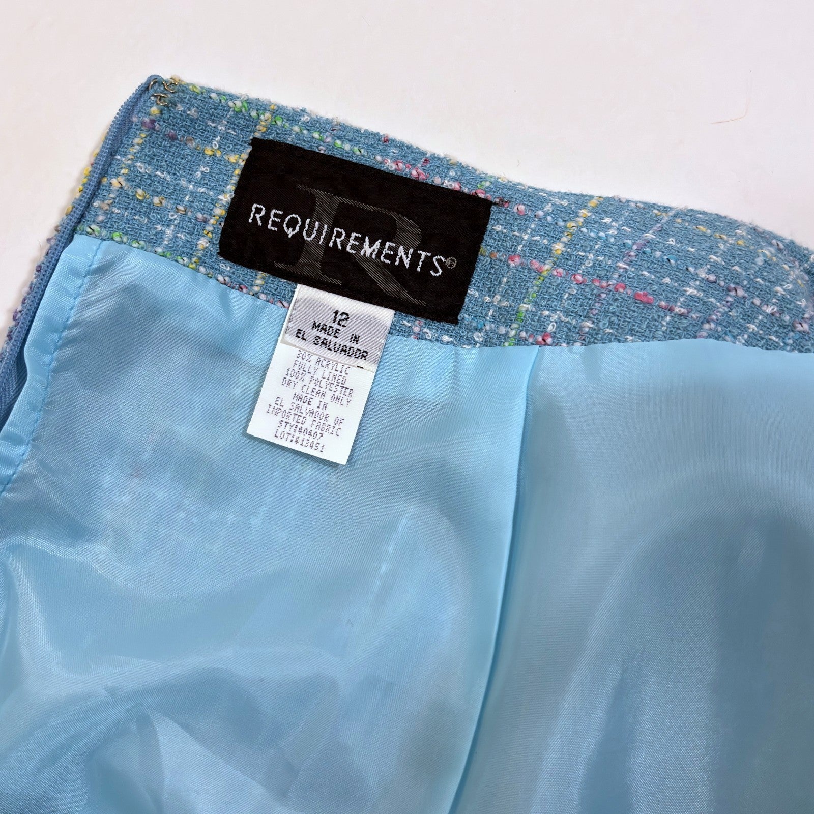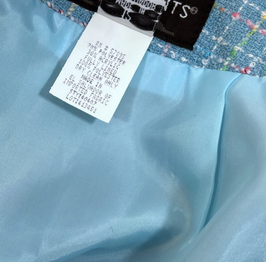 Requirements Blazer Skirt Suit Set Blue Pastel Tweed Knit - 12