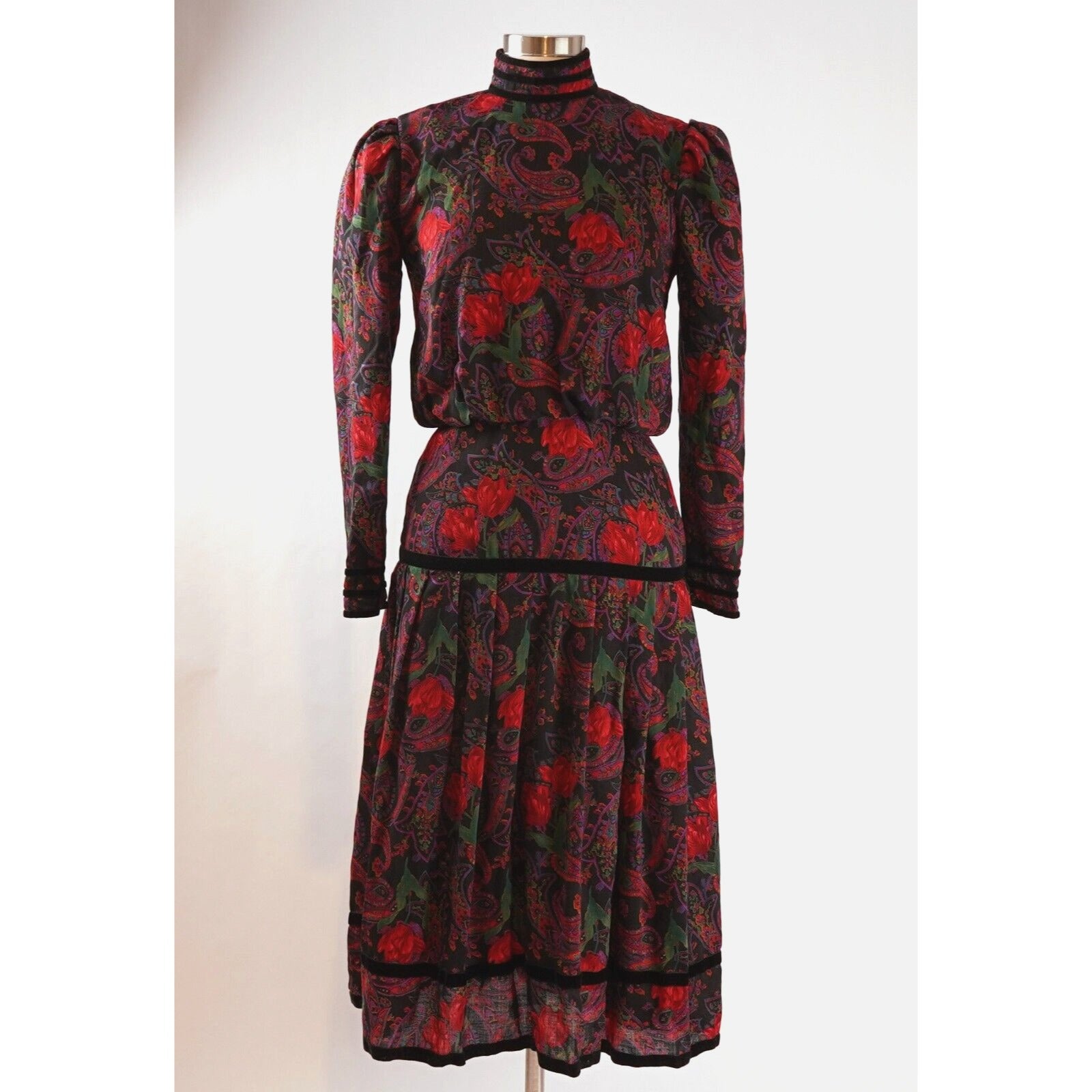 Richard Warren Floral Paisley Wool Dress - 4 - Vintage 80's