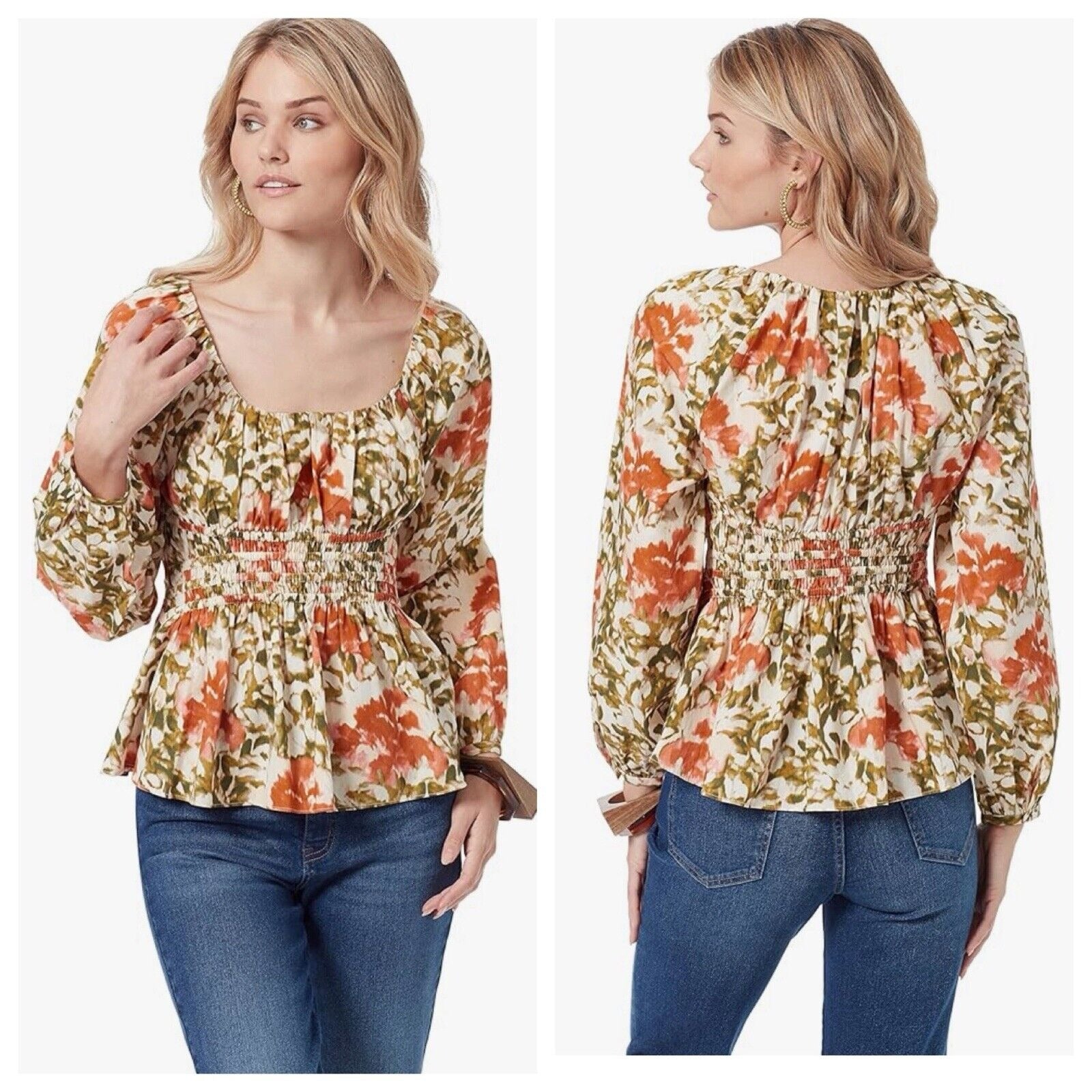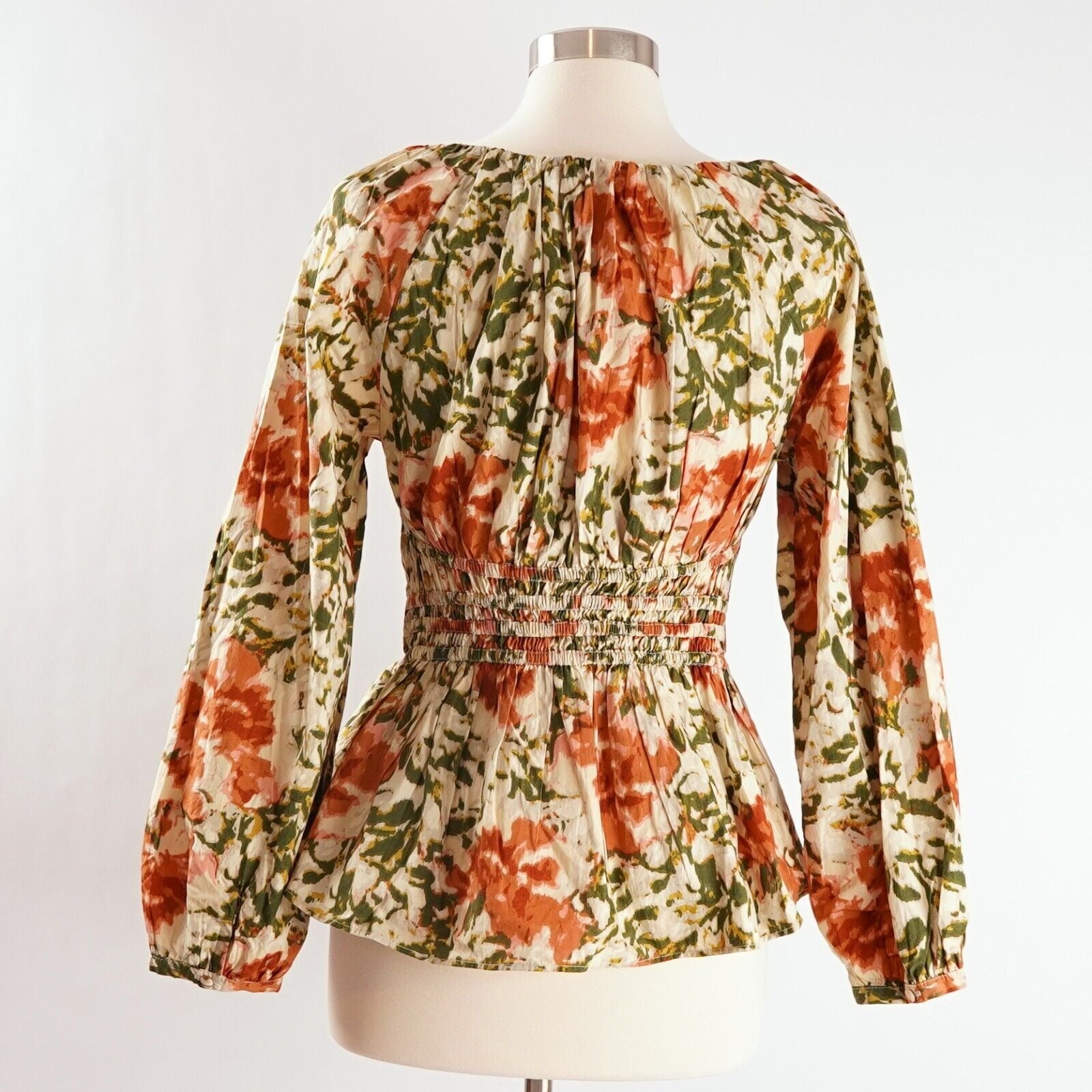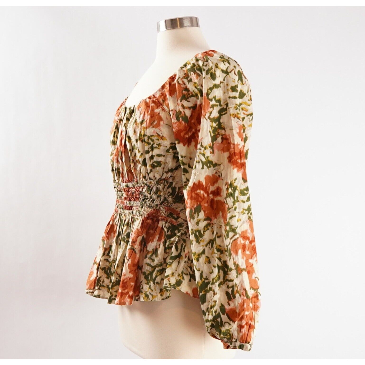 Sam Edelman Cilian Cotton Smocked Bustier Blouse - M