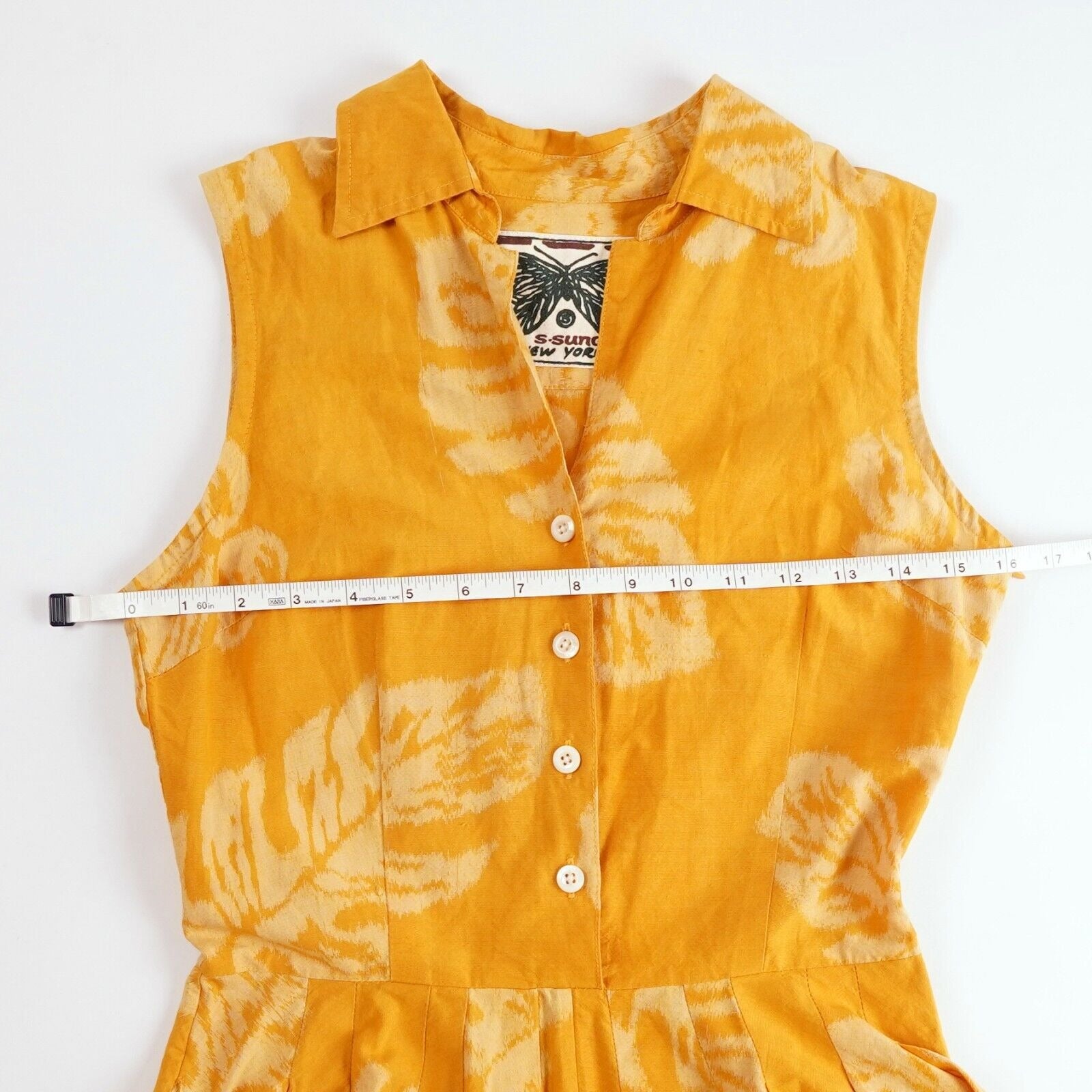 Samantha Sung Yellow Leaf Print Cotton Dress