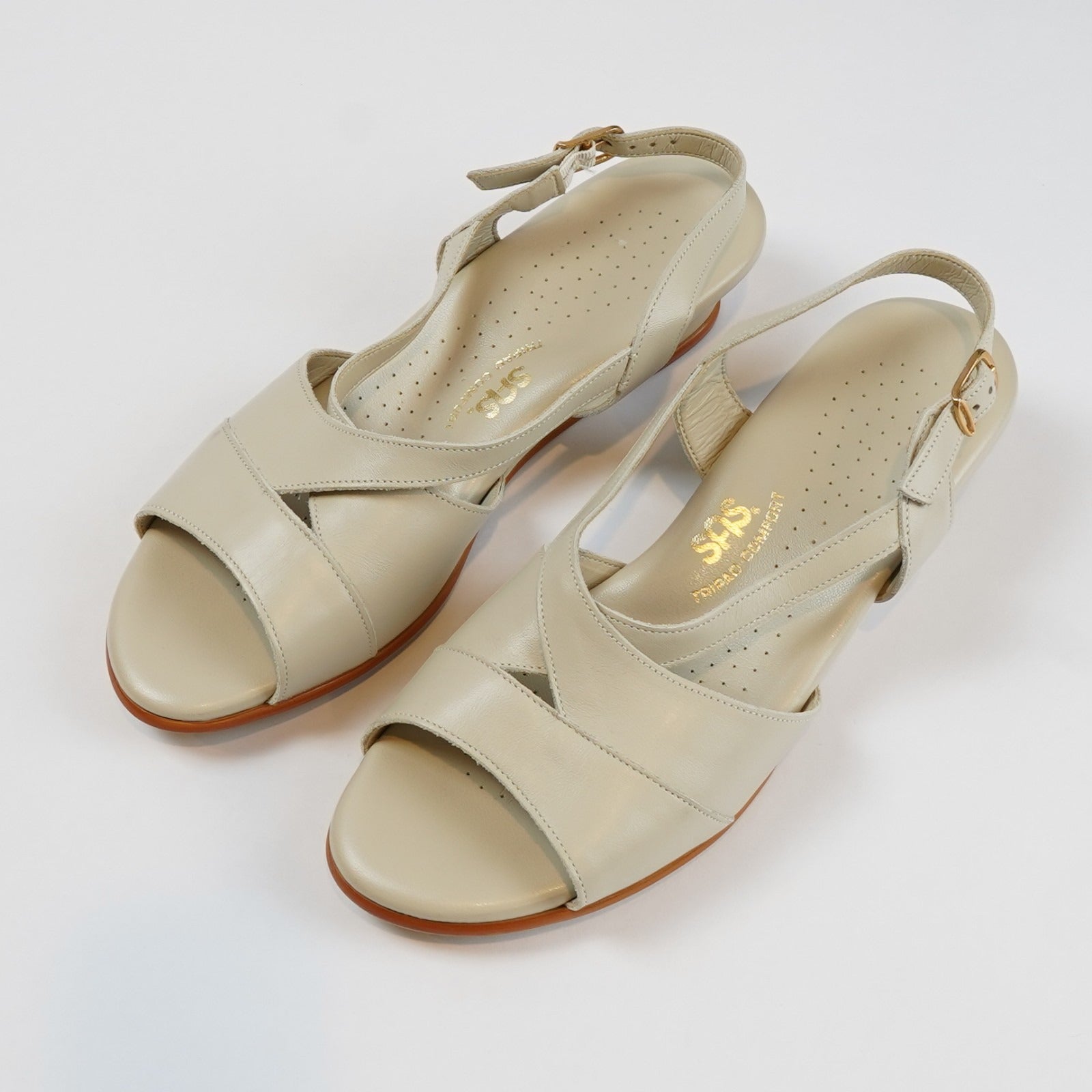 SAS Caress Cross Strap Wedge Sandal Bone White Tripad Comfort - 8