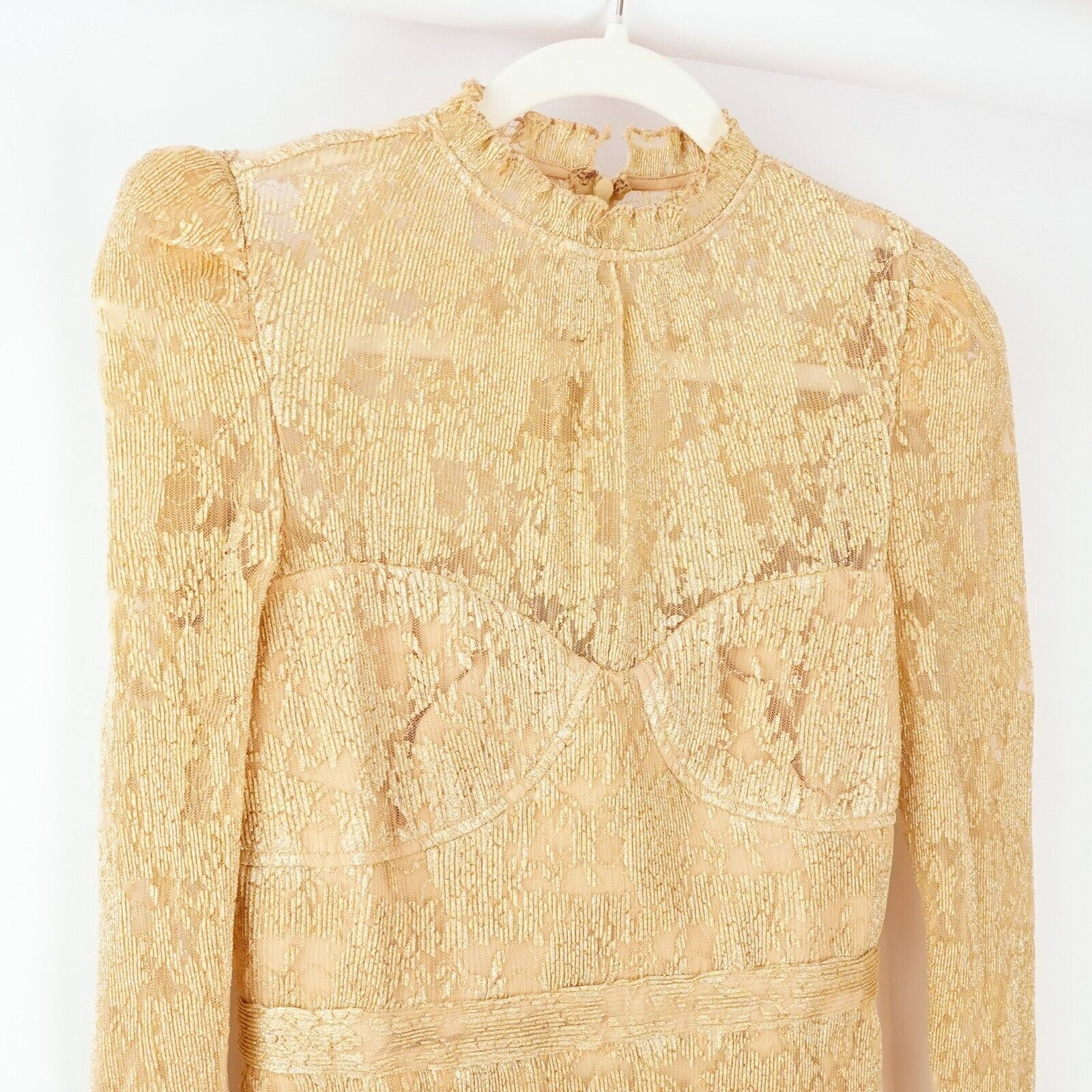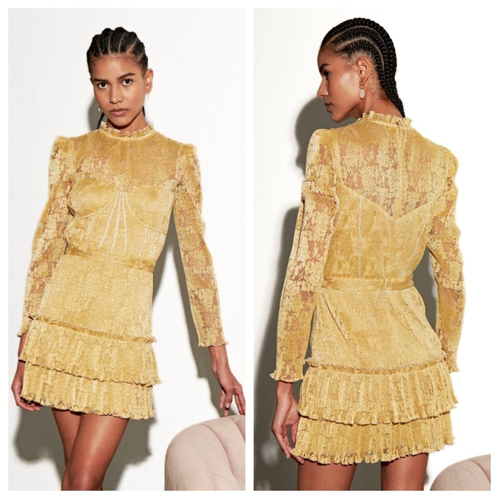 Saylor Adria Long Sleeve Lace Dress Gold - XS