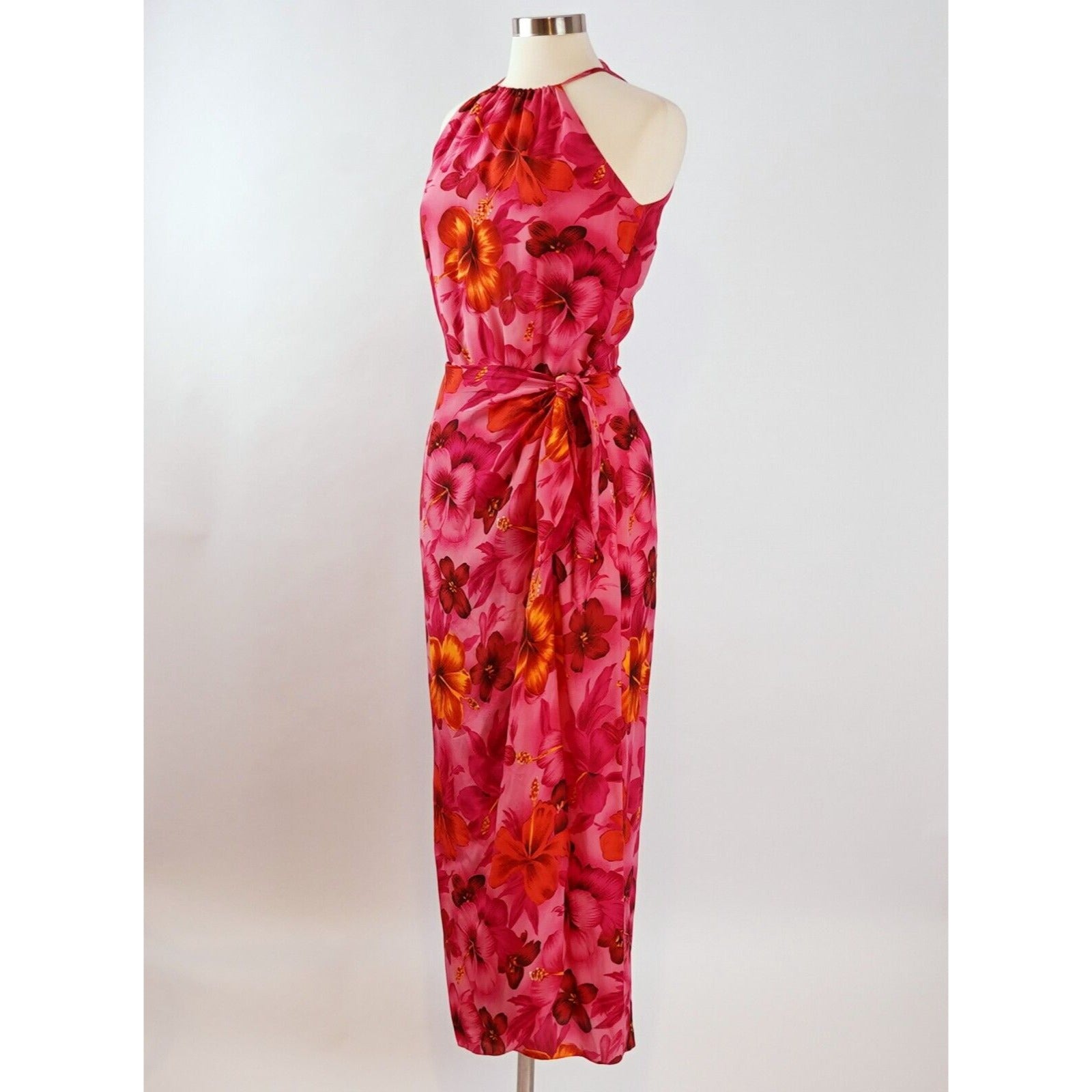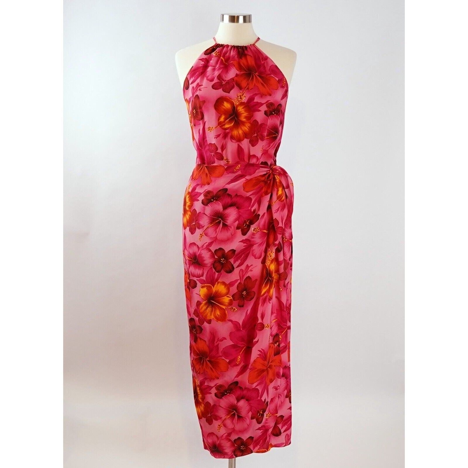 Spenser Jeremy Silk Tropical Hawaiian Halter Wrap Dress - 8