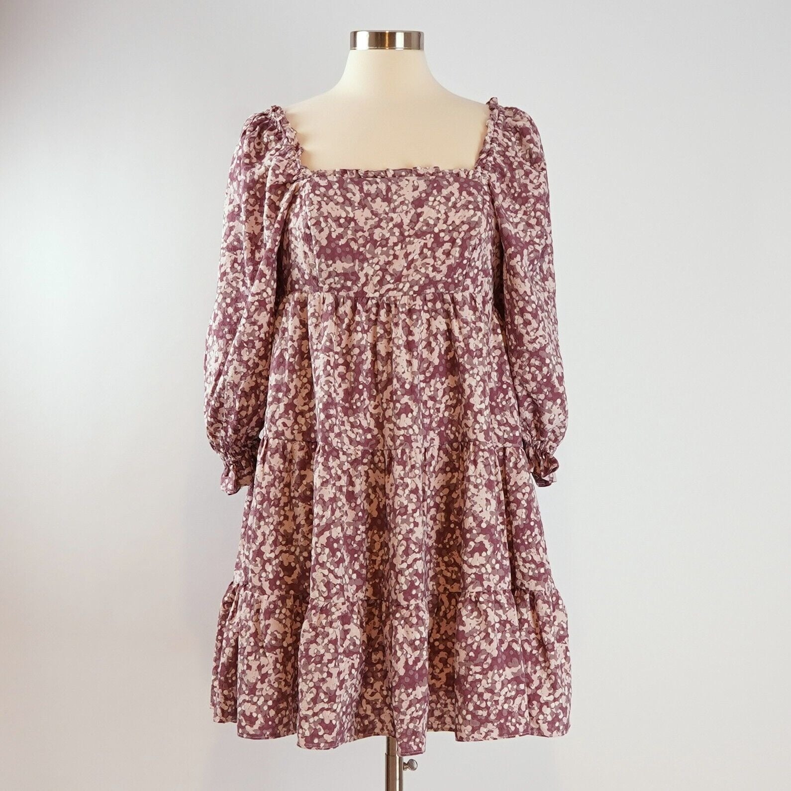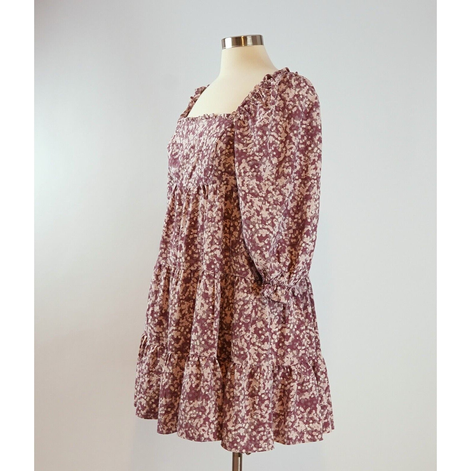 Storia Tiered Puff Sleeve Babydoll Dress - M