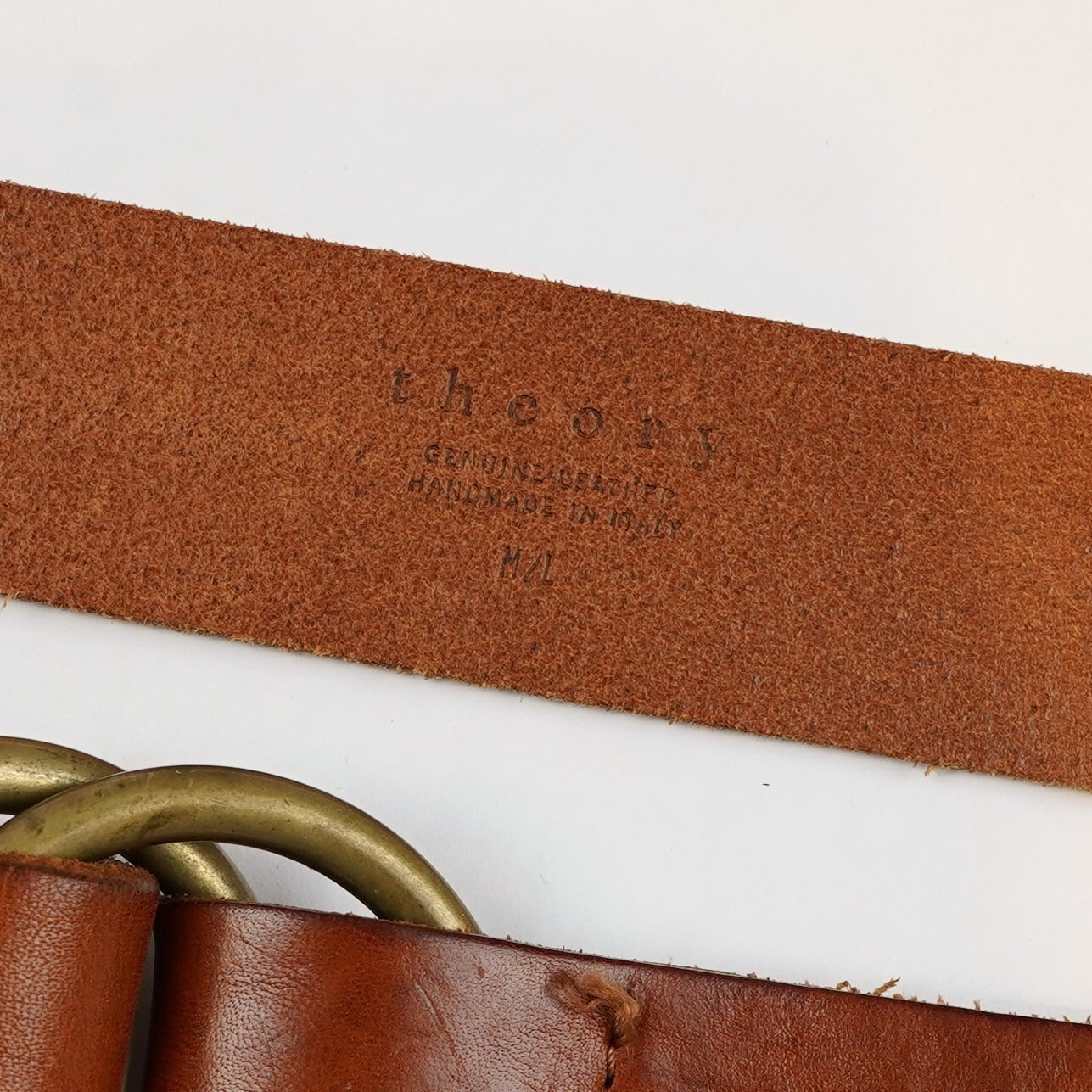 Camel brown genuine leather with gold/brass tone o-ring circular buckle hardware