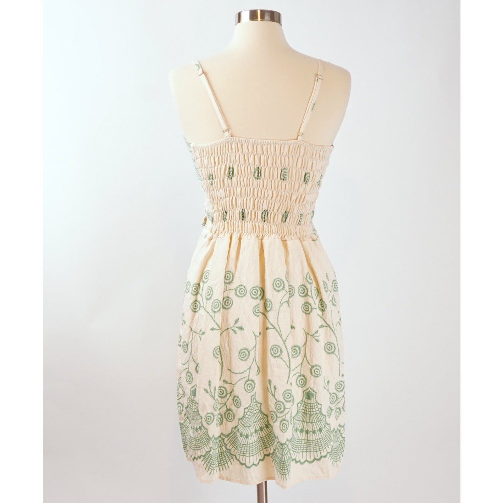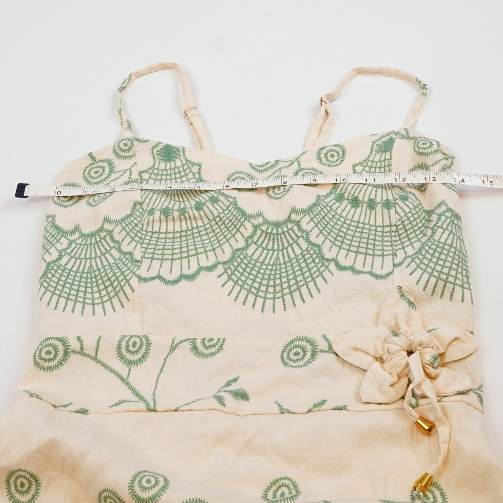 Tropical Floral Shell Sundress Seafoam Green Ivory - M