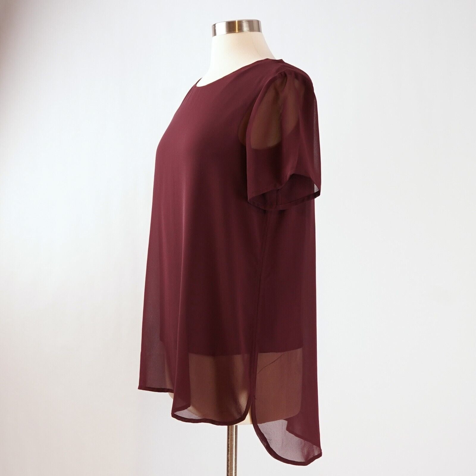Sheer Layered Burgundy/Maroon Short Sleeve Blouse