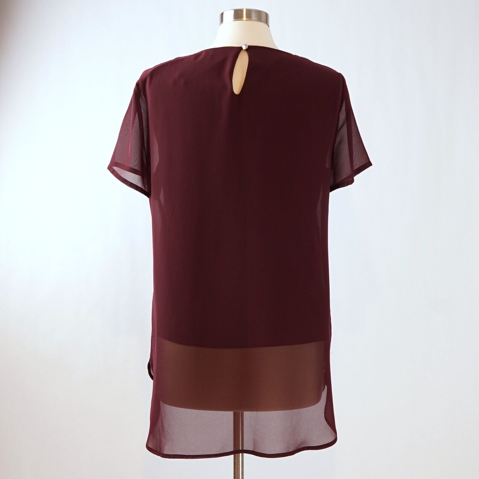 Vince Camuto Sheer Layered Burgundy Short Sleeve Blouse - M