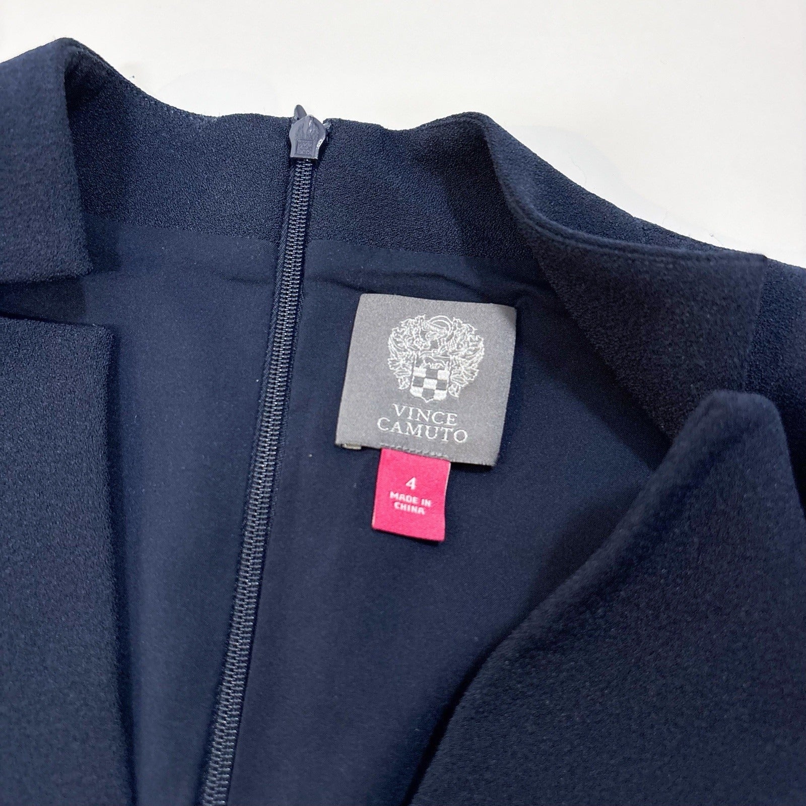 Vince Camuto Wide Leg Notch Collar Cap Sleeve Crepe Jumpsuit Navy - 4