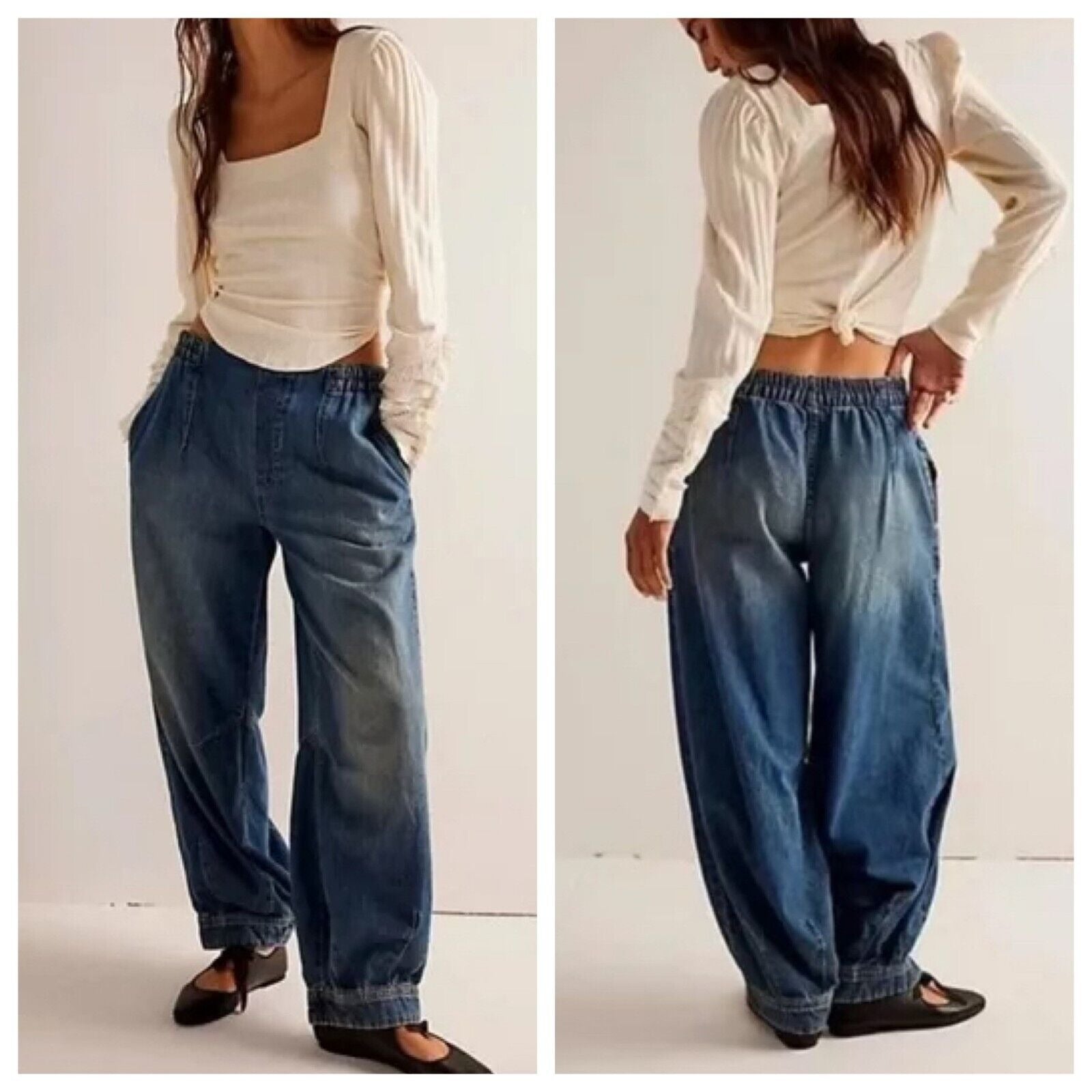 Free People Oslo Pull-On Slouchy Barrel Leg Jeans - S
