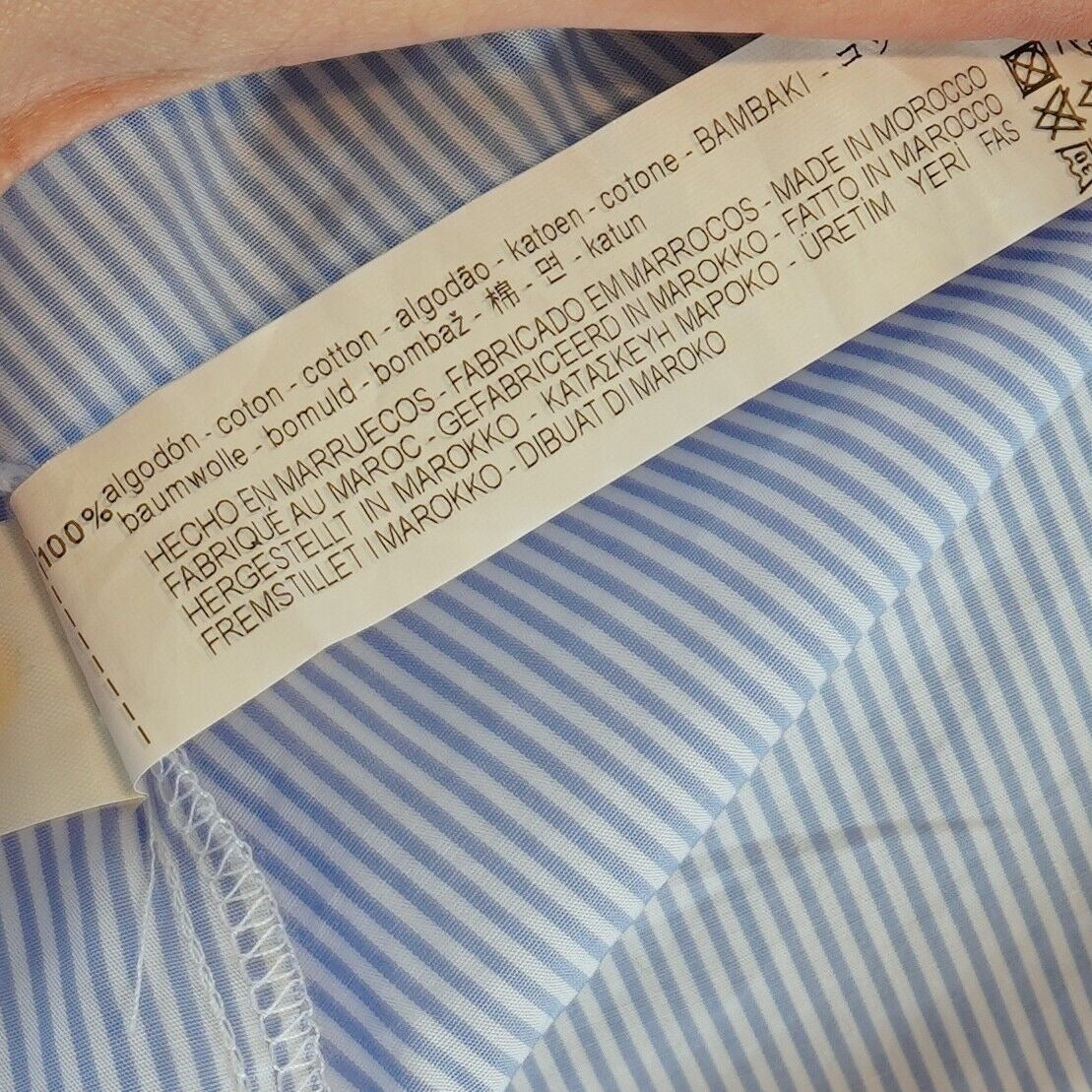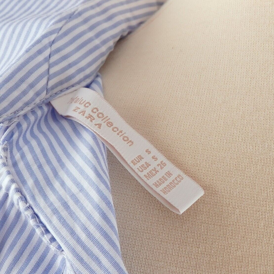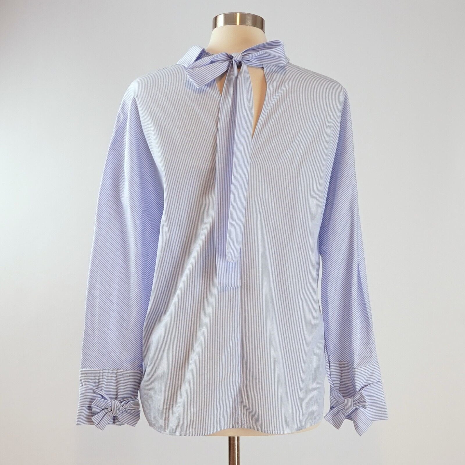 Zara Ribbon Tie Cotton Dress Shirt Blue Pinstripe - S