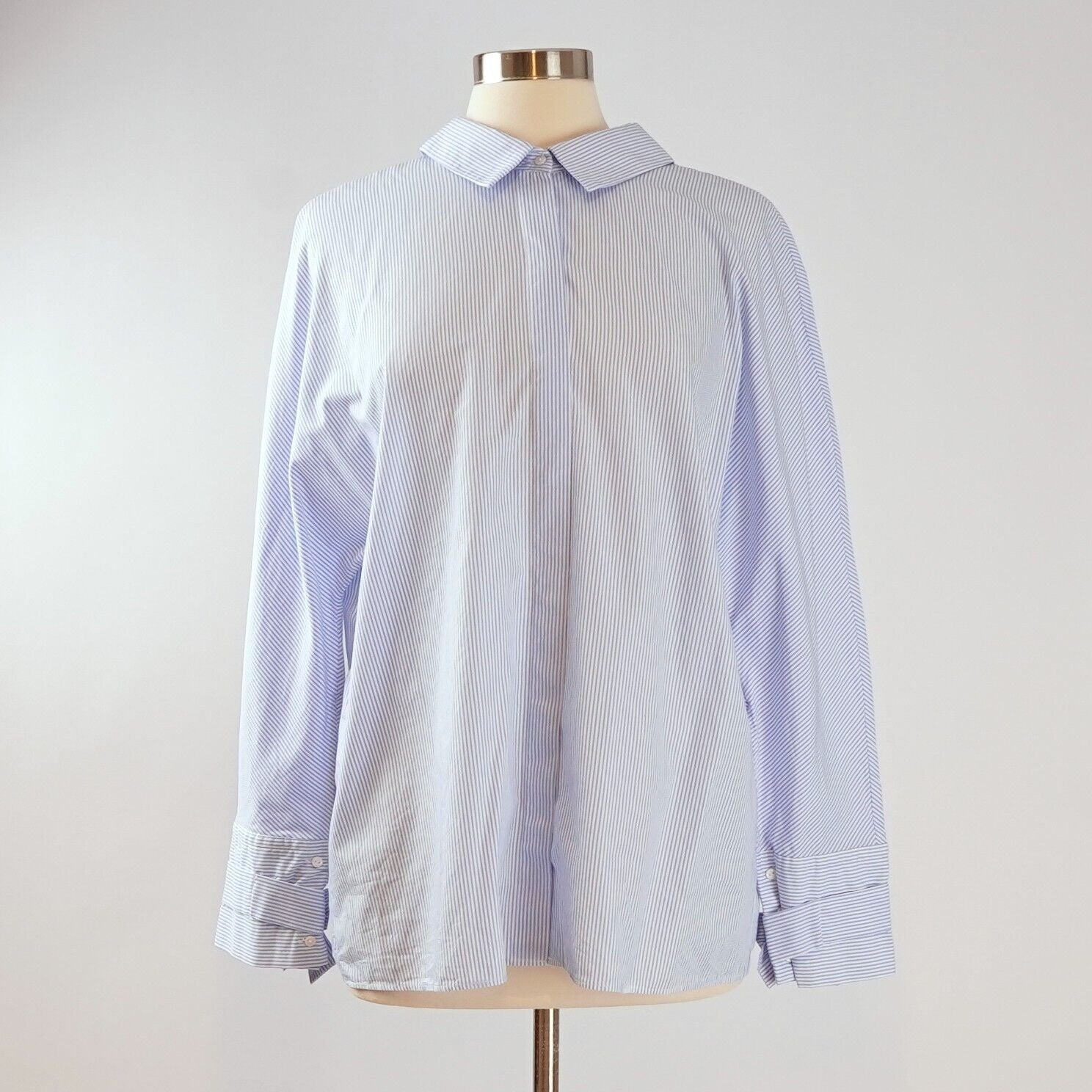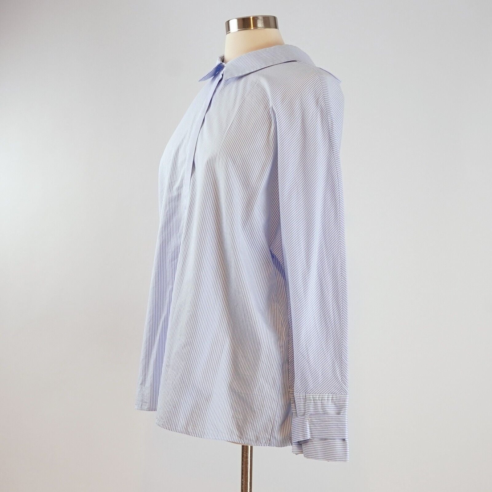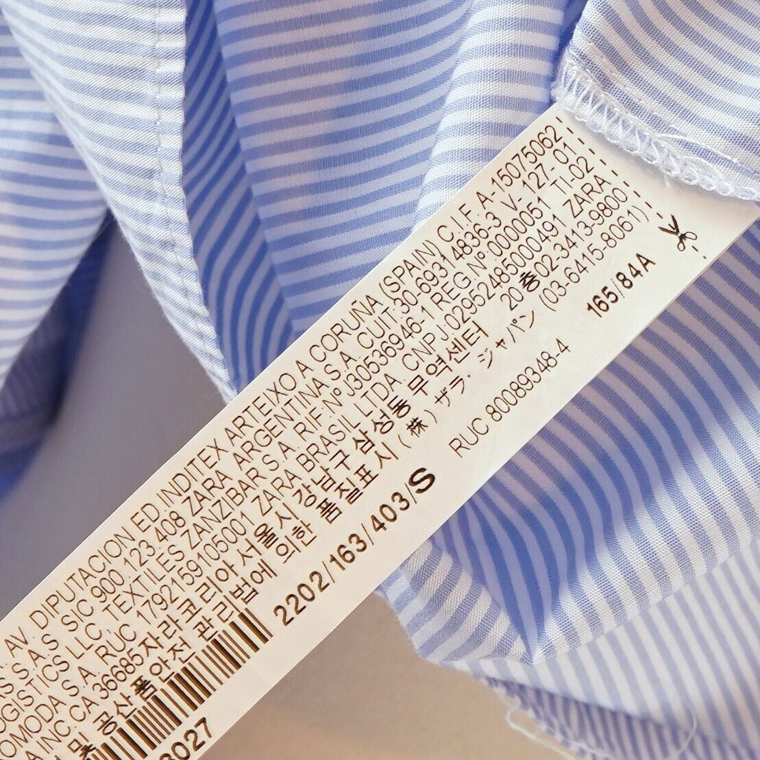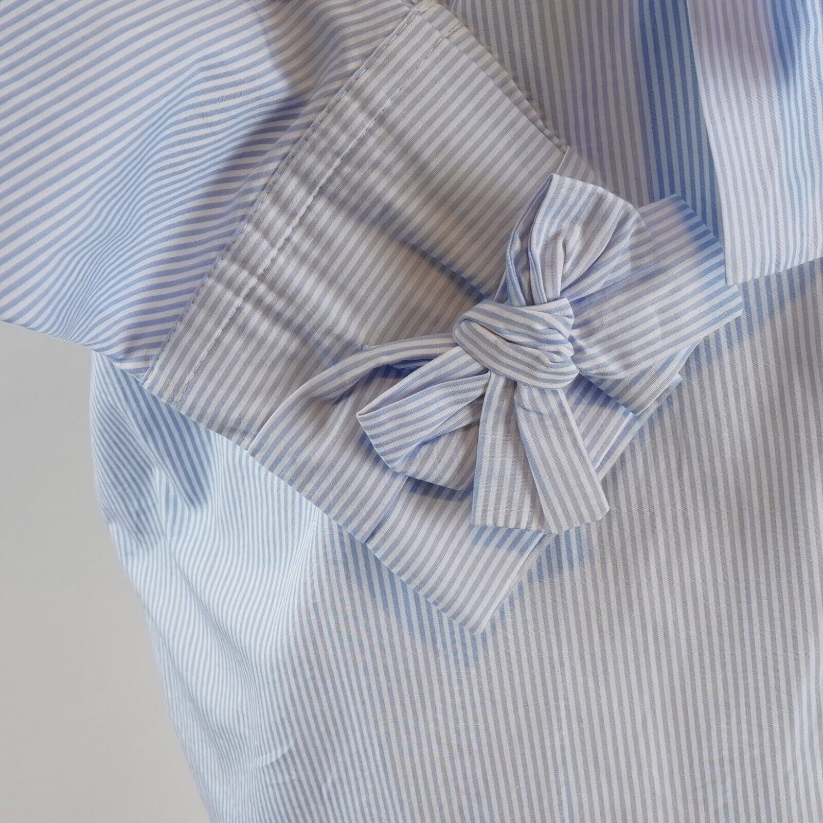 Zara Ribbon Tie Cotton Dress Shirt Blue Pinstripe - S